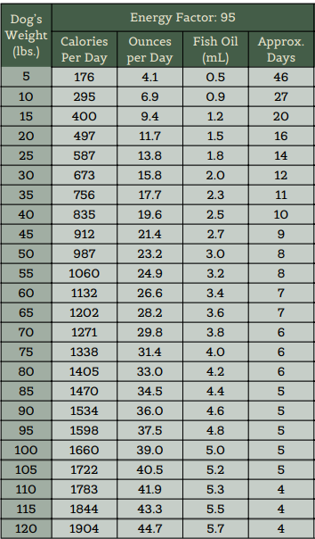 5. Are the feeding guidelines based on the dog’s weight AND provided in specific measurements (grams, ounces, or pounds)?