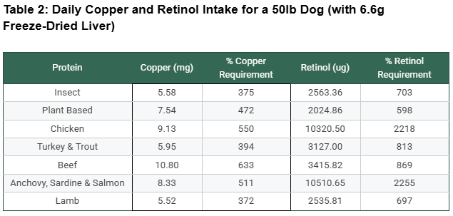 Here’s where things get eye-opening: Just four small pieces of freeze-dried beef liver can meet a 50lb dog’s entire daily copper requirement.